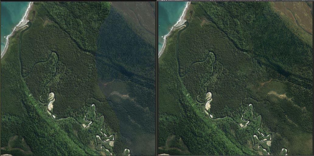 It looks like some parts of the West coast has had drinks spilt on it. Here’s a quick before and after WIP shot. Other patches are a real muddy brown mixture that I’ve tried to correct. I’m guessing it’s coffee.