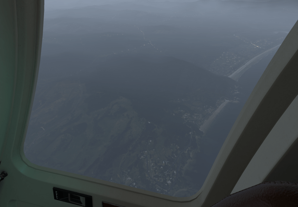 You can see that I’ve been flying with real world weather, and the visibility has not been great. One issue that pops up in X-Plane is that as the visibility is low, the low resolution global mesh appears, which looks odd and wrong.
