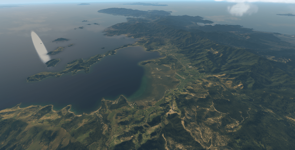 I like to fly in and out of NZRV, and it’s good to see the sloped runway nicely captured on Waiheke Island, no without a mesh patch.