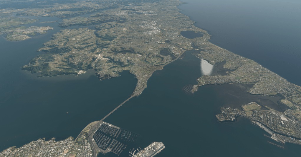 Heading back up to Auckland Intl, the harbour and estuaries start to have shores and banks defined.