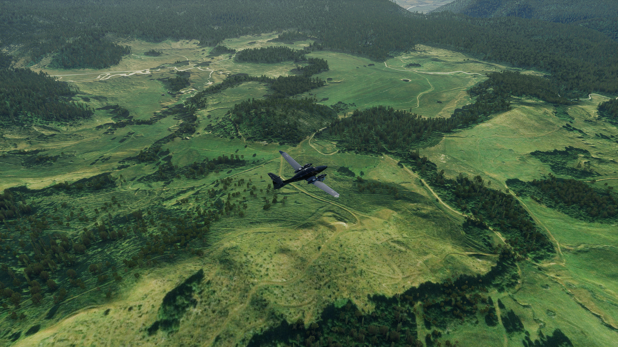 One of the short comings I’ve mentioned before is that 3D grass is not possible with default scenery, and it should really be auto-generated, so I’ve gone a lot more aggressive with shrubs to try to add a bit more 3D detail to what would be flat ground with a bump map.