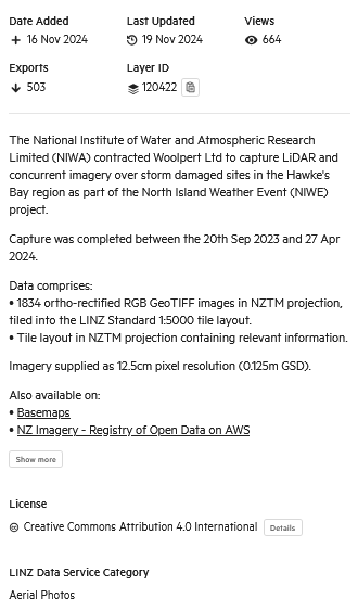 I checked the LINZ documentation and the layer details to see if anything was obviously mis-configured. This led me down several rabbit holes as there are quite a few ways to reference the imagery with different addresses. LINZ also did a big migration to be hosted on Koordinates cloud based servers years ago, so I thought the issue might be related to that.