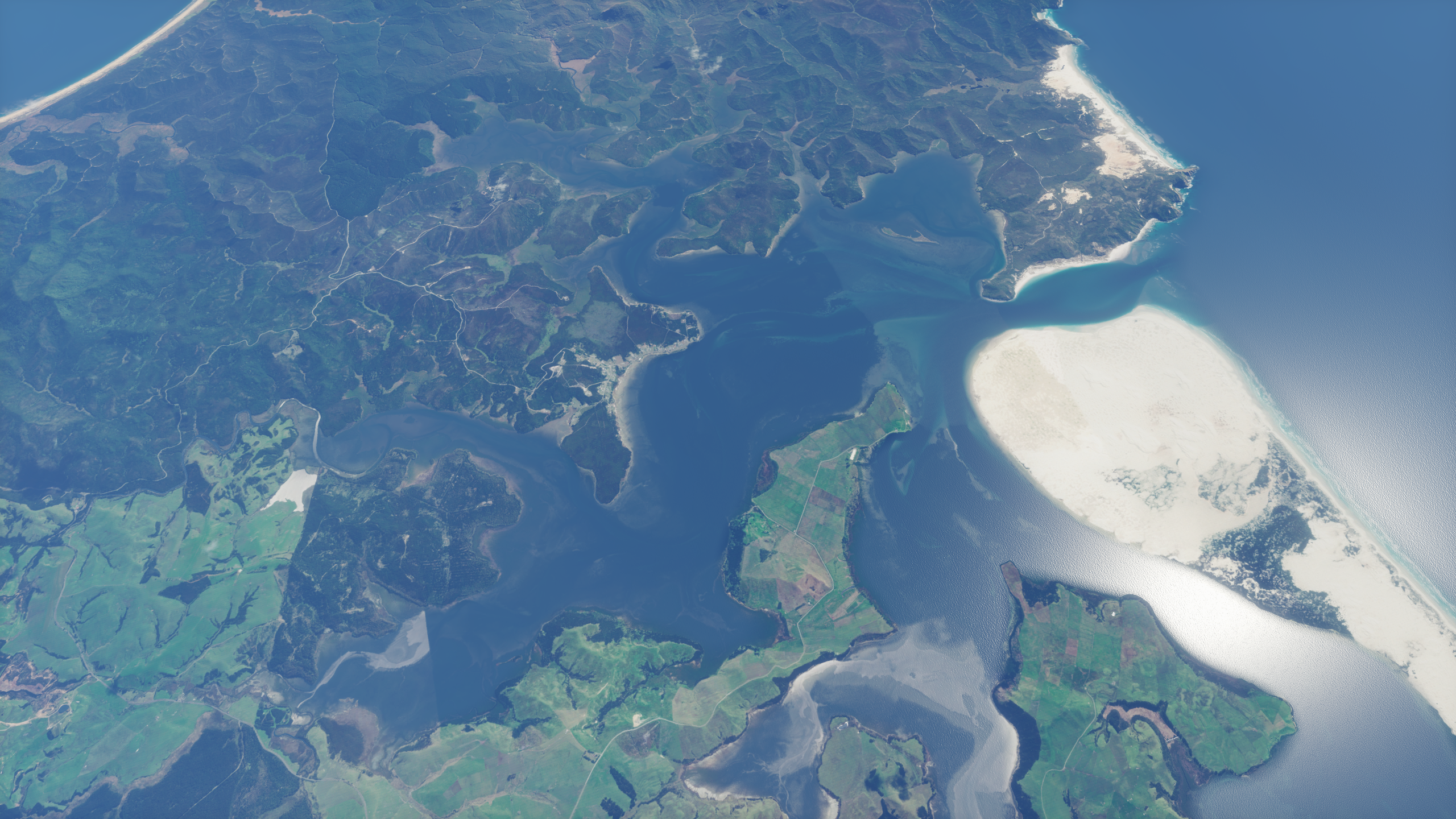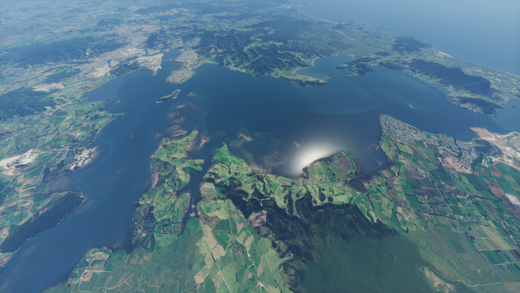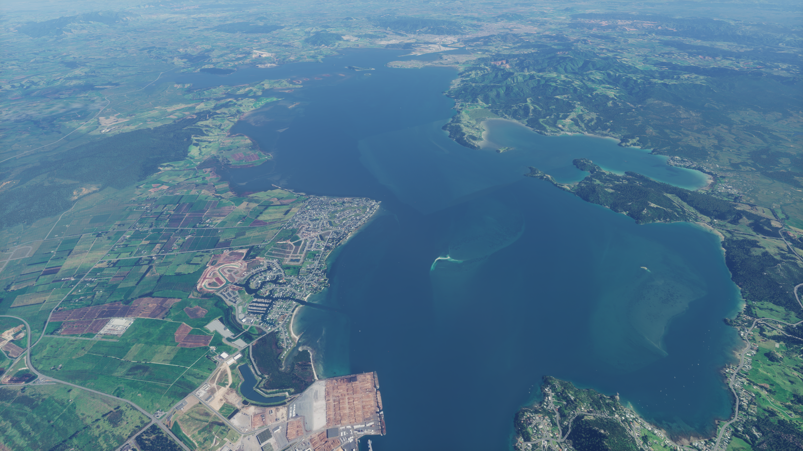 Good news! I’ve finished removing clouds from the scenery last night and remasked the harbours down to the Kaipara. There’s still quite a bit of clean up to get it ready, but here’s a look at some of the scenery now: