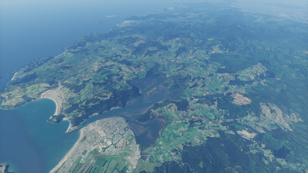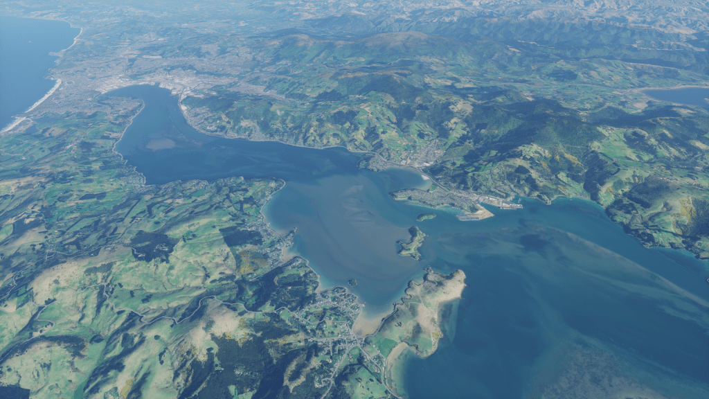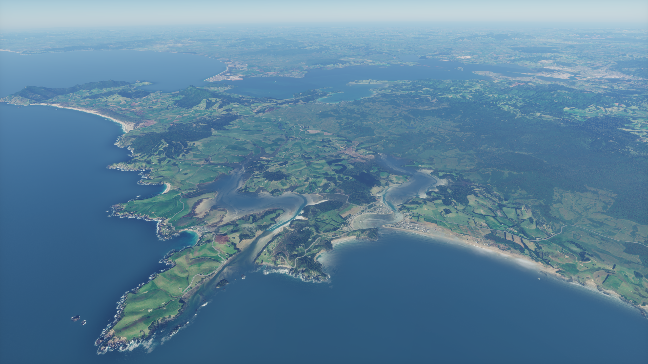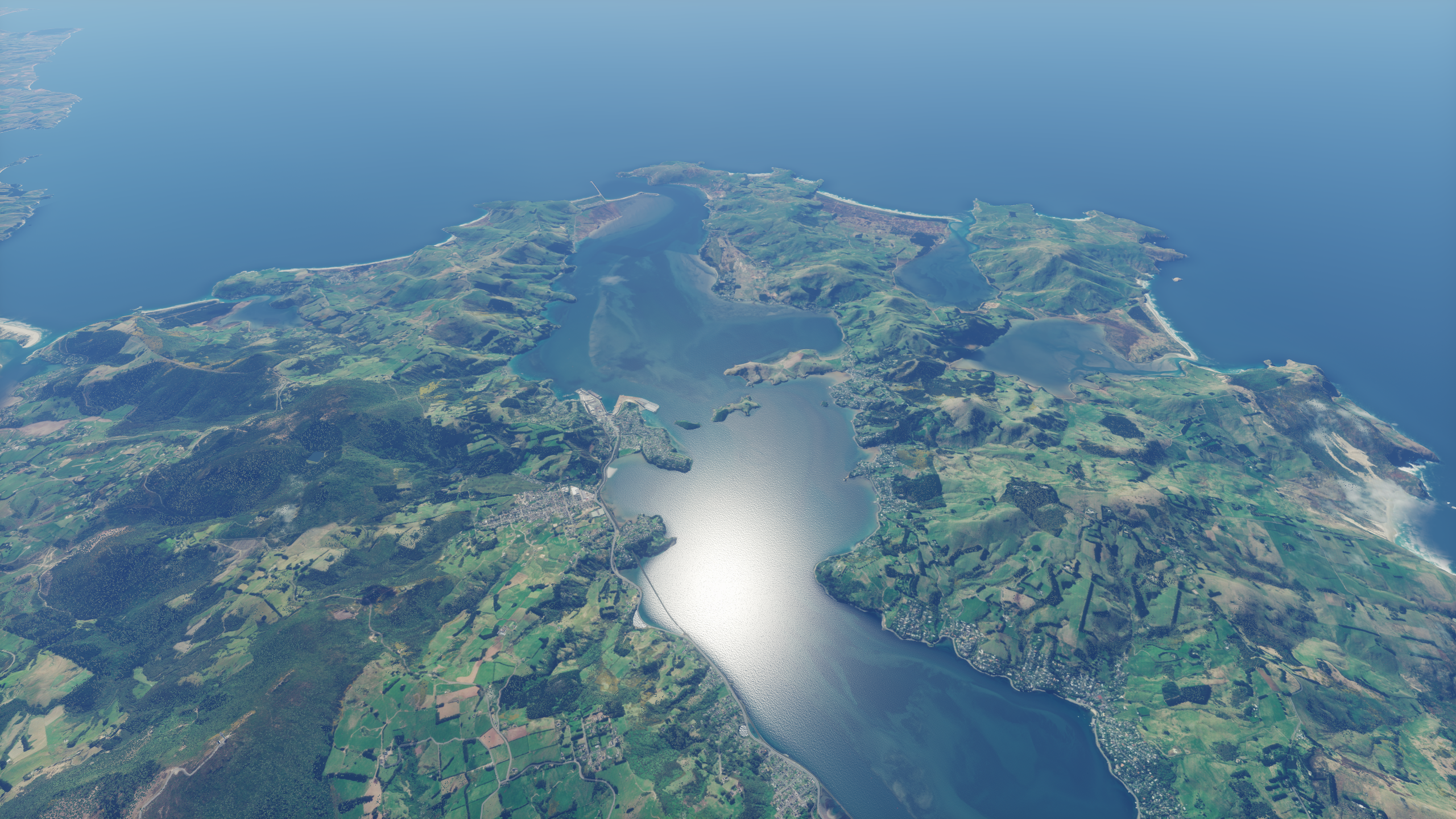 So, I edited the walls of Milford Sound and the airport area to remove clouds and also take away the shadows. The shadows will still be created in sim by the engine. You’ll also want to change the NZMF airport from the one used by default. It has ‘always flatten’ enabled which crushes the mesh and gives it shear cliffs around the airport. Here’s what it looks like now: