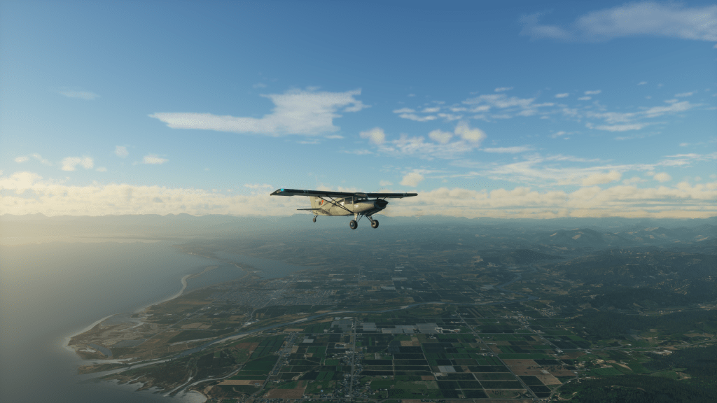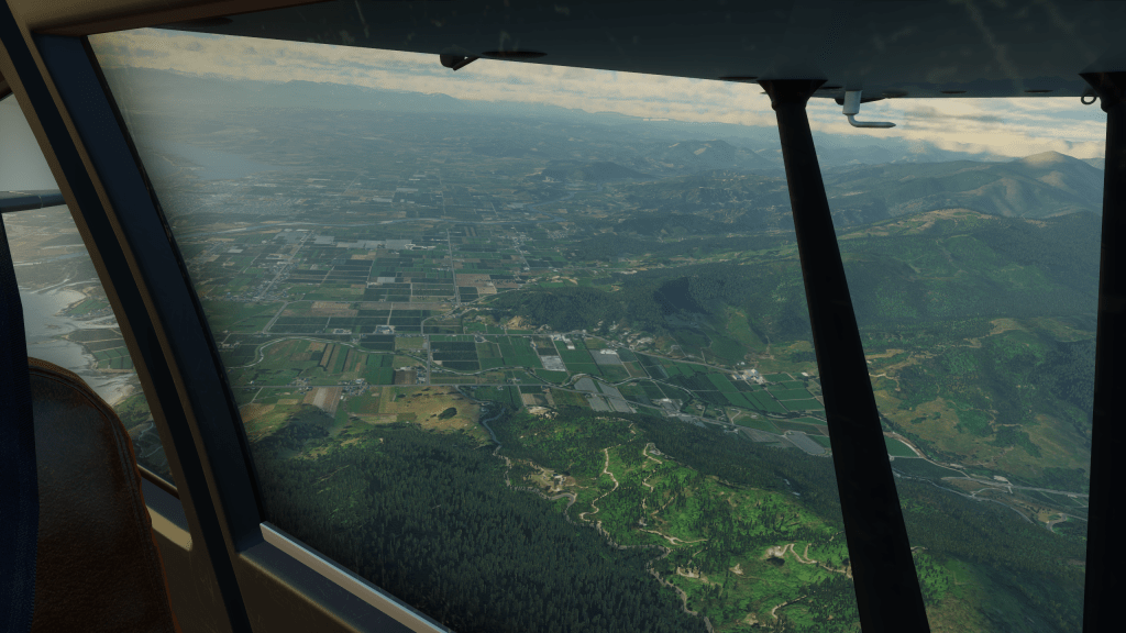 Flying VFR is a chance to get a new perspective of the terrain. The sim has just been updated and now features a dynamic camera that moves based on physics. If you change direction, the camera will react as your head would. This is noticeable when you touch down and see a shudder effect. Turbulence works in a similar way, which is very nice.
